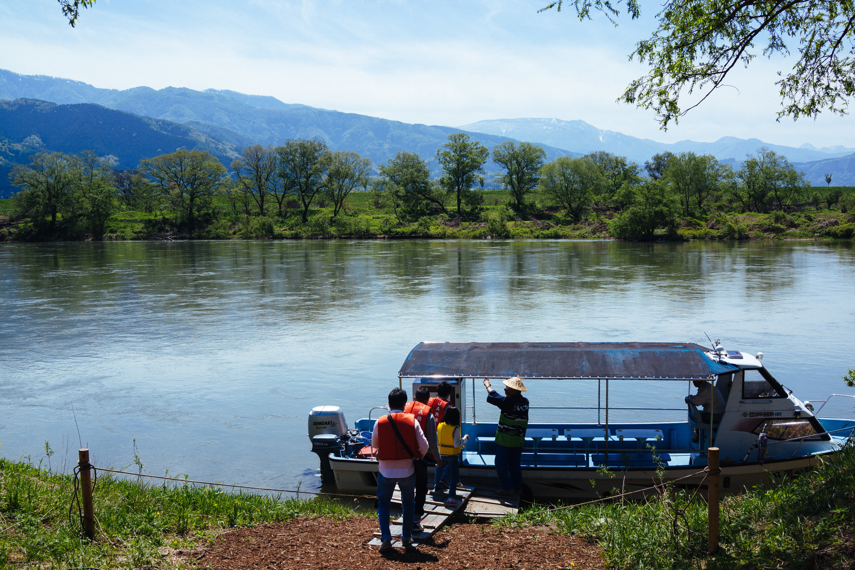 イベントのときだけ運行されている渡し船は、アルプスの雪解け水を湛えゆったりしている。そこを船ですすむときに川面を過ぎる風は気持ちがよくて、その風景には日本って美しいところだなと感動する。
