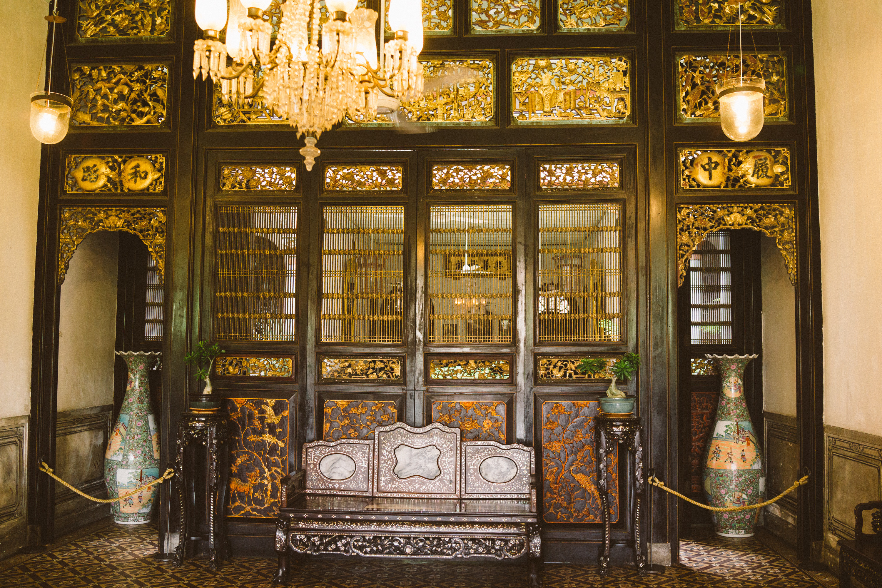 マレーシアで成功した中国人実業家チョン・ファッ・ツィーが暮らした場所であり、中国スタイルの邸宅になっているのだが、タイルやステンドグラスなどヨーロッパ風なところも融合されている。