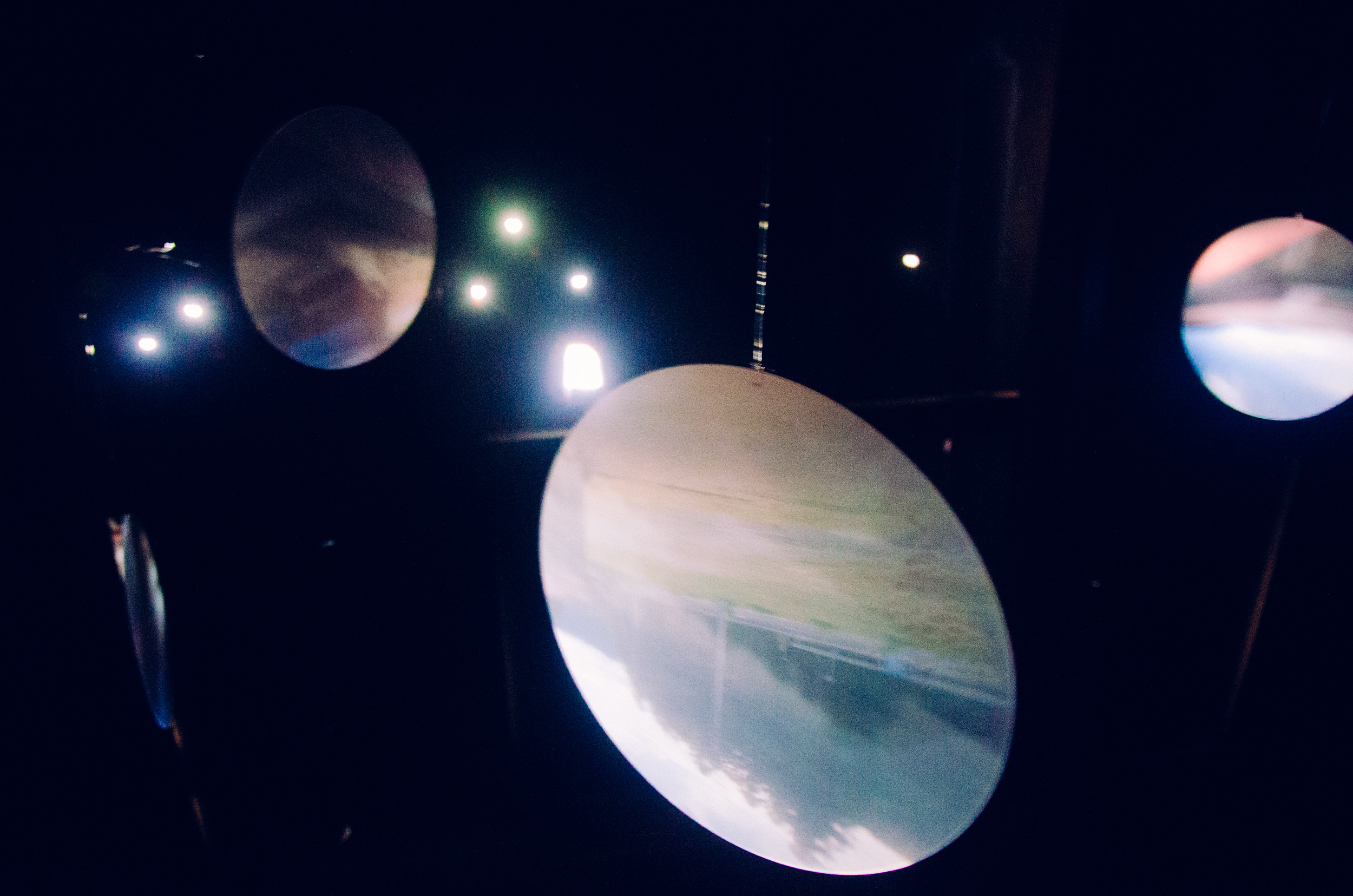 製材所の屋根裏みたいな小部屋にはいると小さな鏡のようなものがあちこちにつり下がっている。よくよくみると、それぞれには風景が映り込んでいるのだが、壁にあいた小さい穴から取り込んだ外の光を反射させて写している。