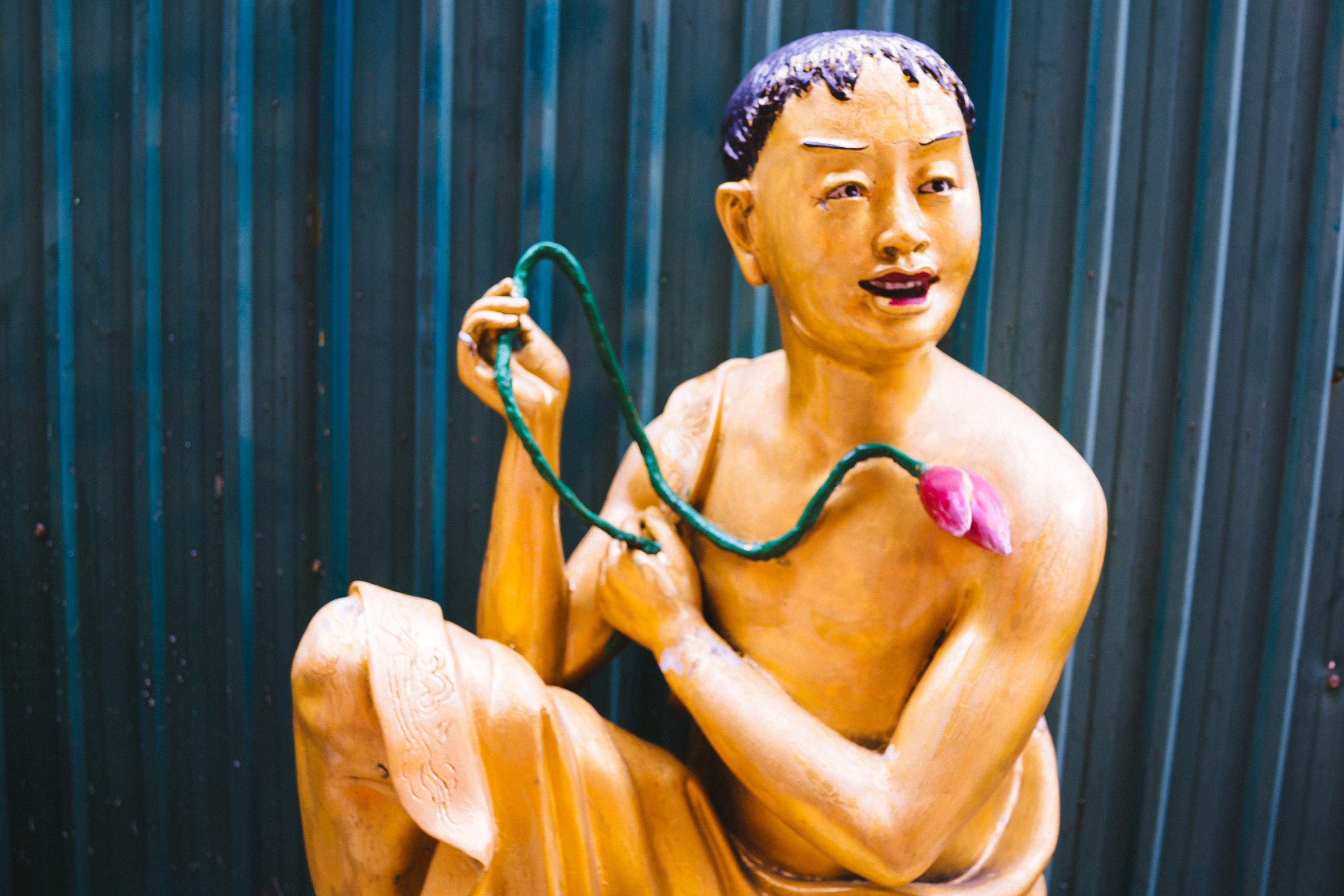 人の家の裏庭みたいなところを抜けるとお寺の入口が見えてくる。ここまで来るとあの、不思議な仏像達が見えてくるのである意味安心できるけれど、なんだあれっていう不安感もある。