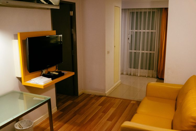 部屋はいわゆる普通のシタディンのスタイル。サービスアパートなので部屋が広いのは居心地がいいし、キッチンと冷蔵庫もしっかりしたのがついているのは便利。
