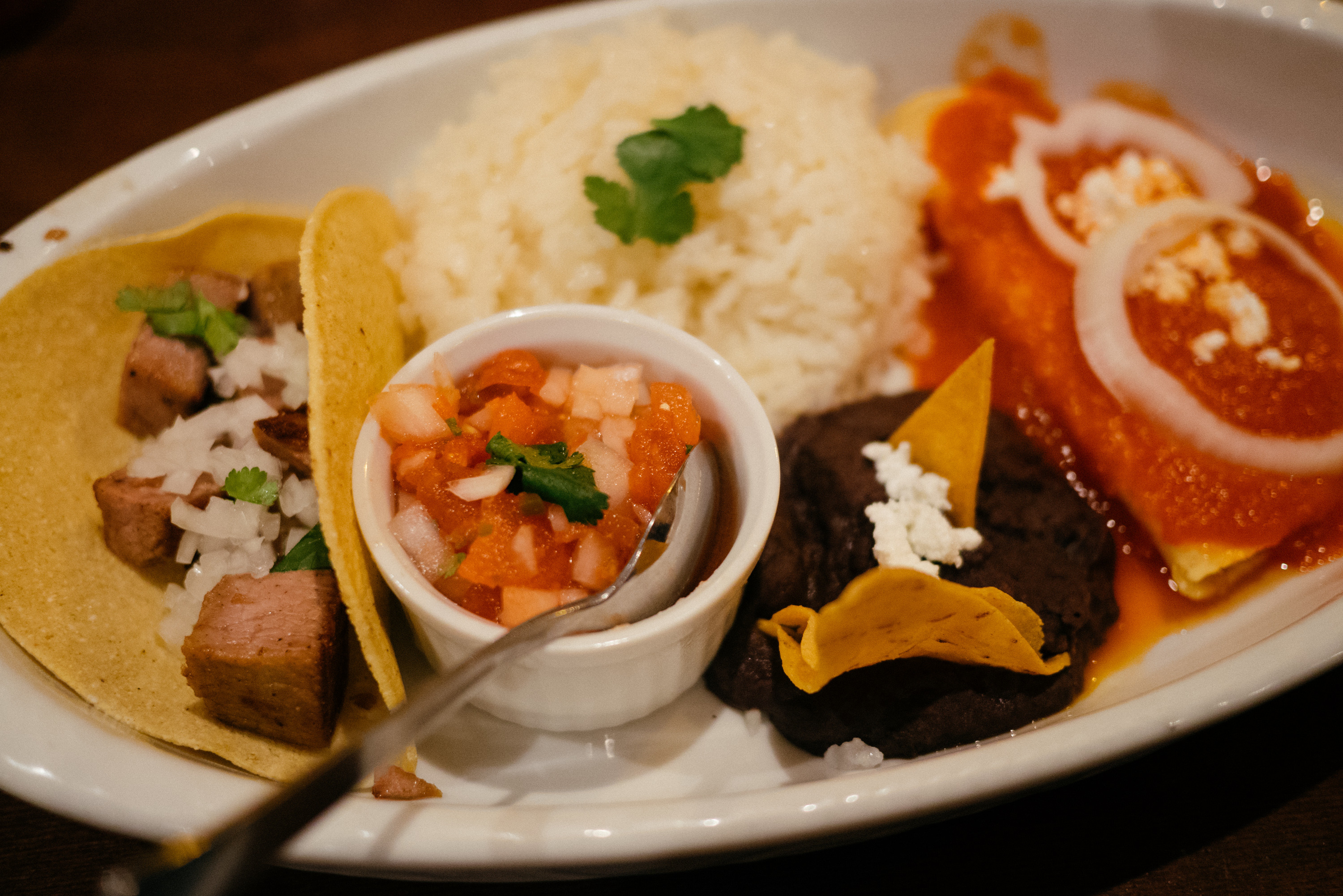 ランチではメニューの種類は少ないものの、エンチラーダのセットがあって、ボリュームは普通だけど、ちょっとずつ色んな種類の料理が楽しめるのがいい。これで、1,000円というのはお得感がある。