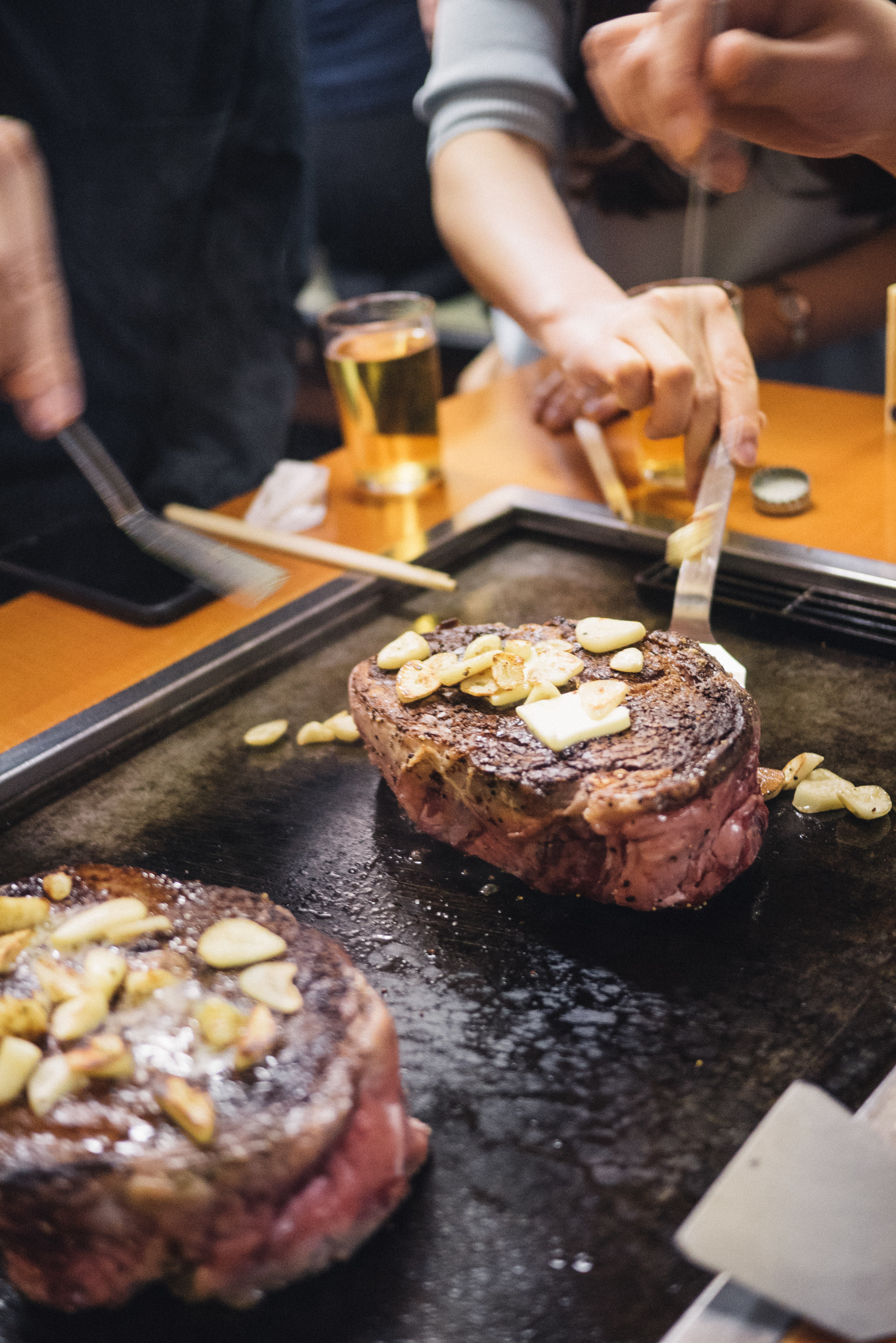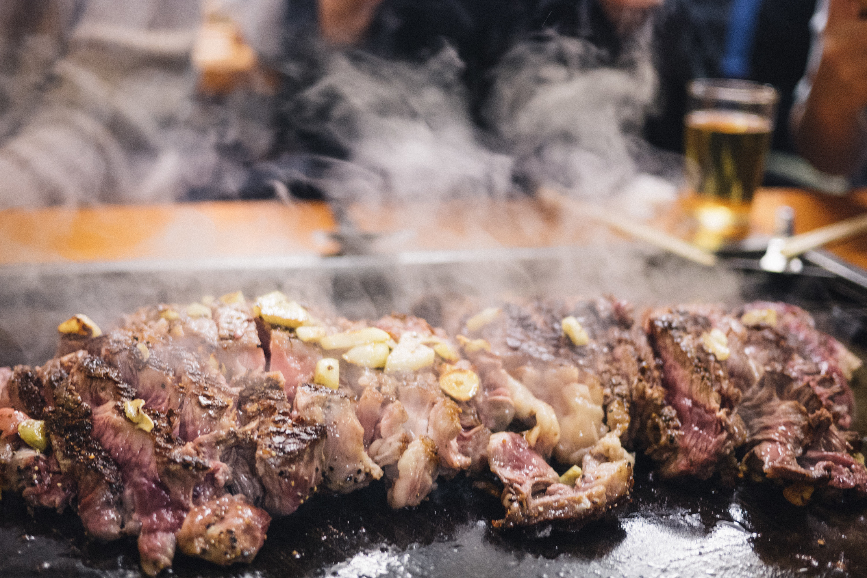重要な教訓:「決して、肉を自分でいじってはいけない。にんにくを鉄板で炒めるだけにすること」。