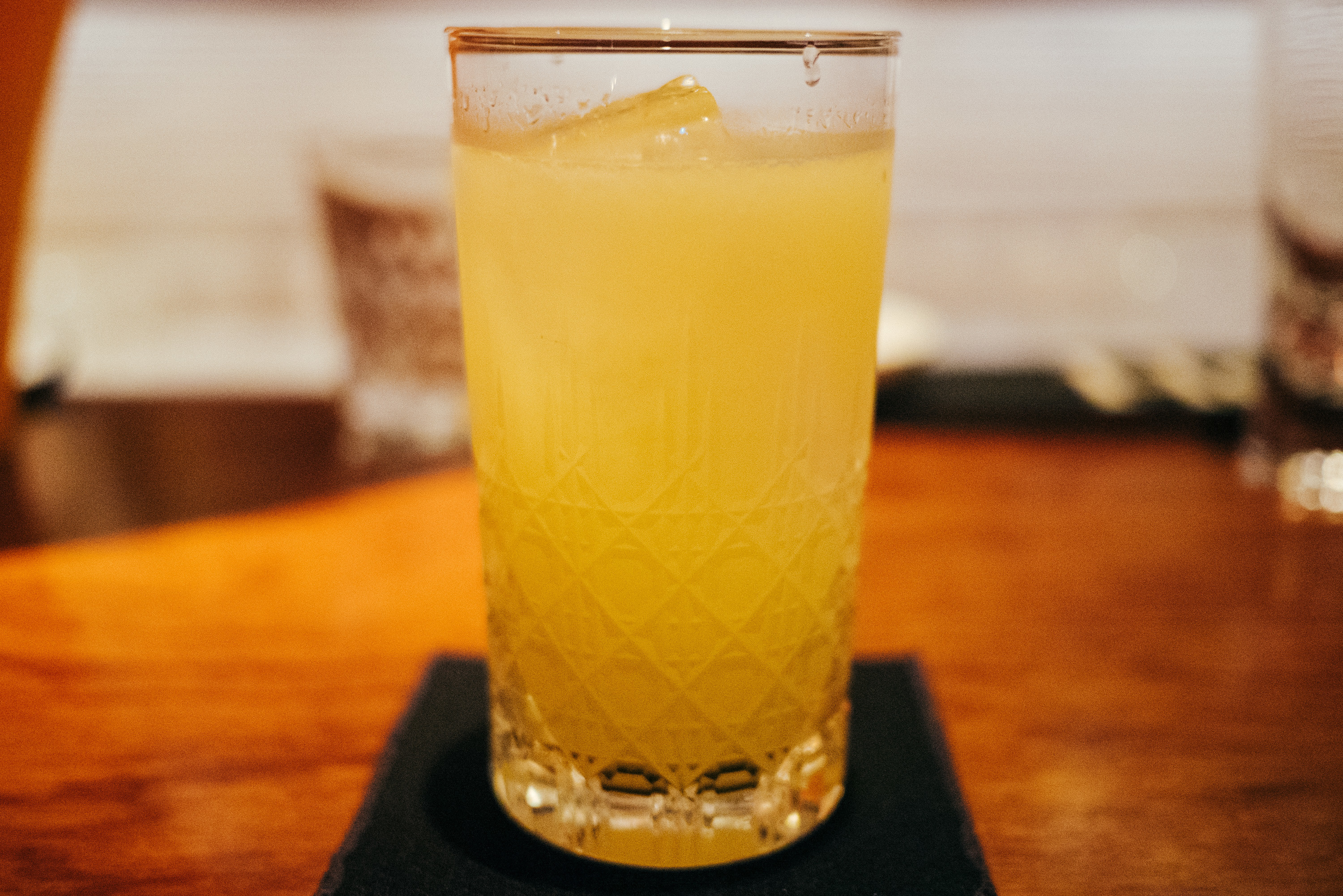 カクテルについて。The Common One Bar Kyotoの系列では季節のフルーツをつかったカクテルもおすすめということ。ちょうど冬の時期だったので、金柑のカクテルをお願いしてみることにした。冬の金柑ってどうしてこうも美味しいのか。家でも毎年、金柑のリキュールを漬けているのだが、カクテルにして果実も楽しむというのもまたいいものだな。