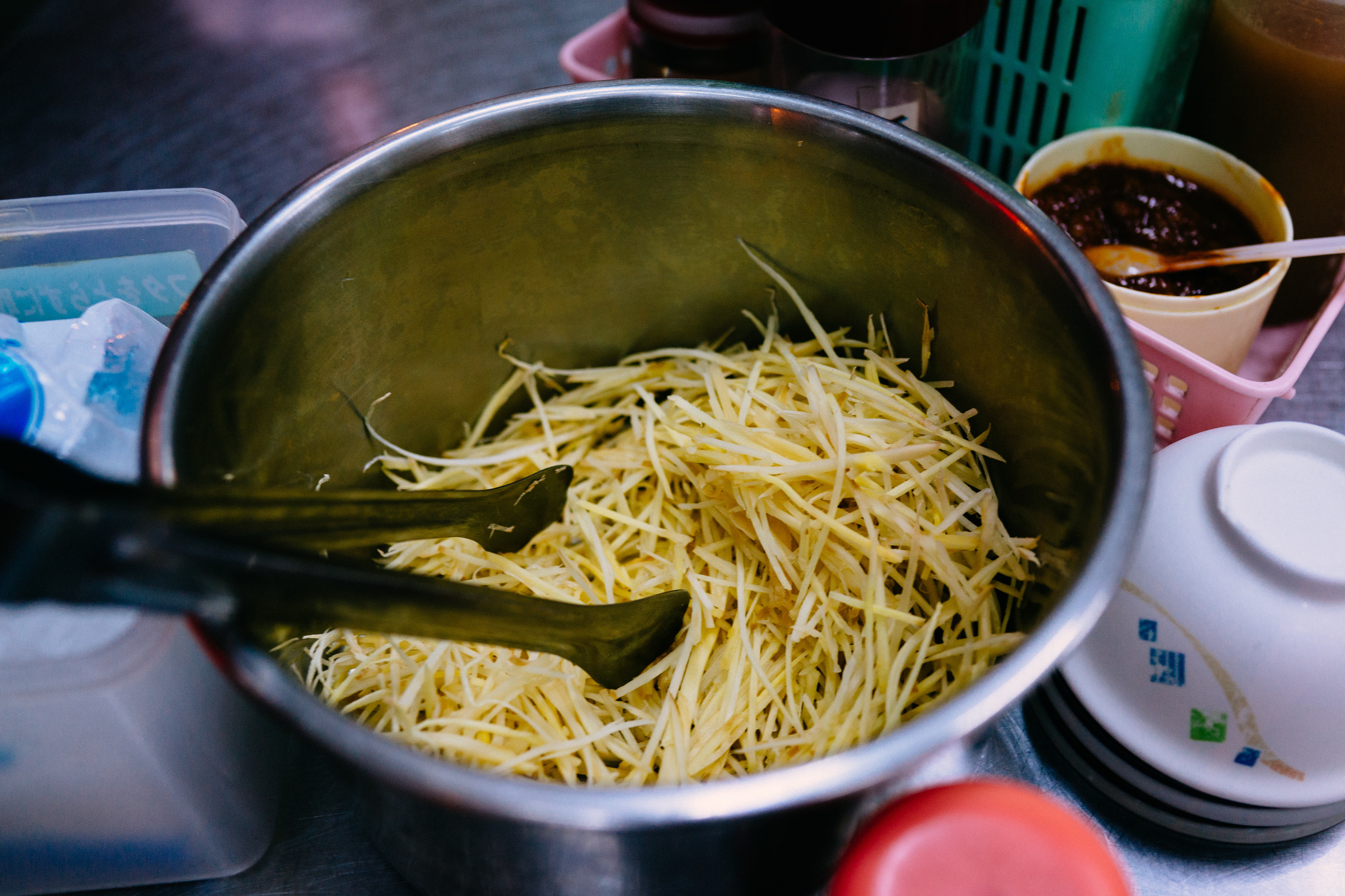 生姜とかタレについては自分で好きなだけとって調合できる。辛そうな味噌みたいなのもあったから、自分で味付けしてみるのが台南のスタイルなのかもしれない。