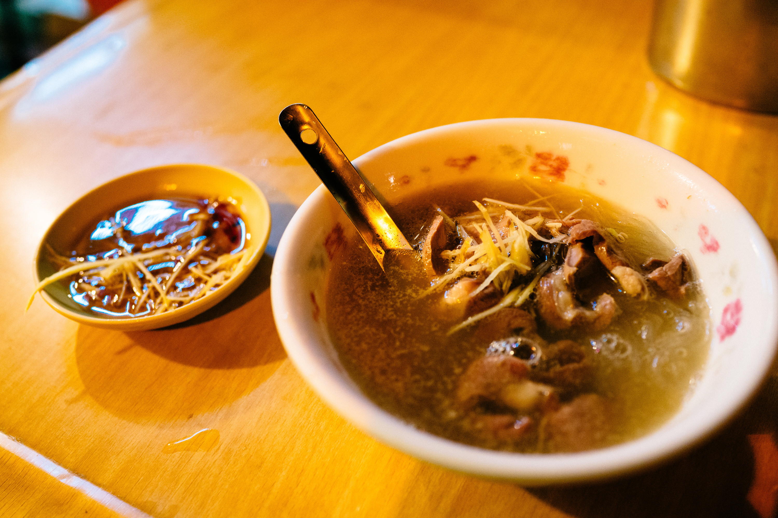 ここでは店名の通り、豚のハツを使った料理が有名。みんなが頼むのは店名にもなっている豬心冬粉というもので、春雨入りのスープのなかに豚のホルモンが入っている。