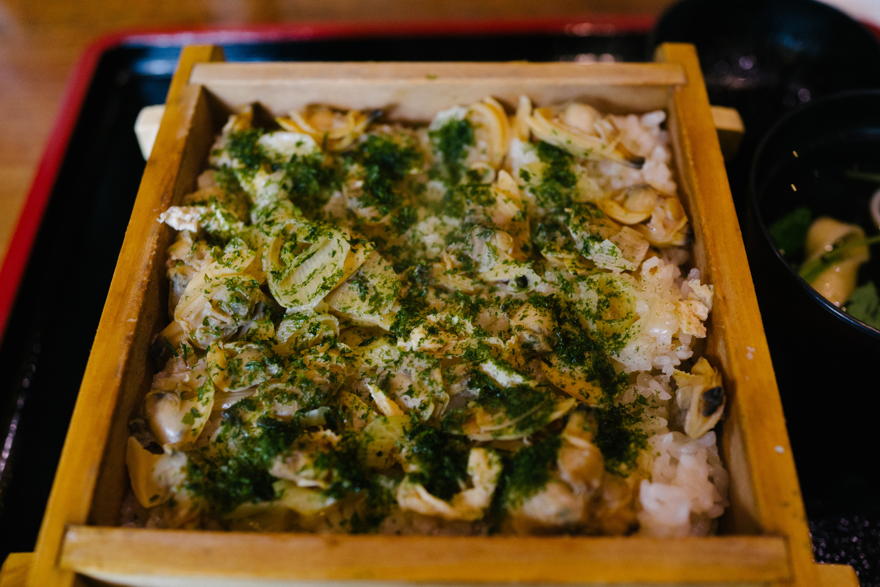 ランチは時間を間違えると結構並ぶことになり、そしてせわしない。流れ作業的に食事をすすめることになる。定番でおすすめなのは「あさり飯」。上げ底になっているので、思っているほどの量はないけれど、上品な感じがする。これが漁師飯だったとは考えづらいところだが、まあ現代風にアレンジされているということで。