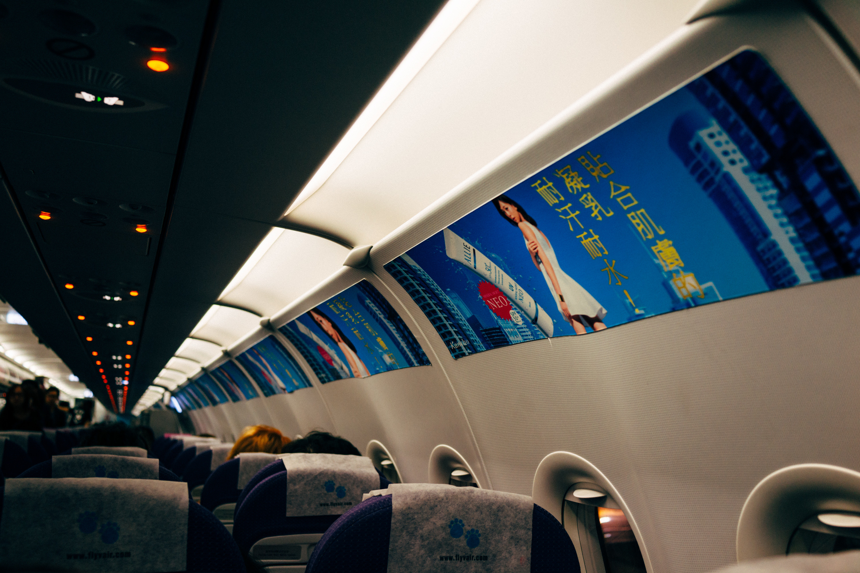 機内では席の狭さに驚くが、窓の上の両側に広告が貼り付けてあるのにも驚く。こういうアイディア勝負の企業努力の姿勢は結構好き。CAの人たちは若くて、いい意味で台湾っぽいゆるさがある。こればかりは乗ってみて体験してみてもらいたいのだが、出発前のアナウンス含めて楽しい。