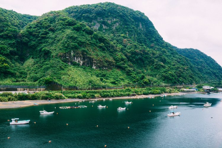 秘境っぽイメージがあったのだけど、車で移動するには気持ちのいいドライブコースが続いていて、鏡のように穏やかな海ではカンパチの養殖をしている。