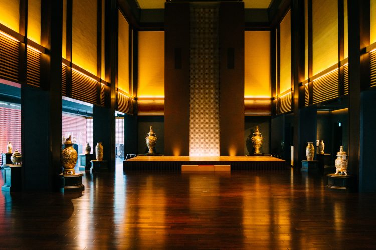 薩摩伝承館、神殿のような館内