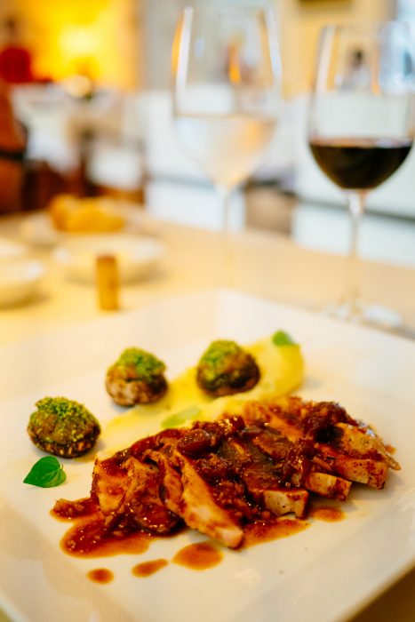 ランチはコースのみで値段が異なる。わりとボリュームがあるので、一番安いコースでも満足できると思う。メニューの雰囲気としては奇をてらったところはなくて古きよきフランス料理というか、オーソドックスなものになっている。海から離れたプノンペンという街の性質上、海産物はいまいちなことが多いので、それは外しておいた方がいいかもしれない。