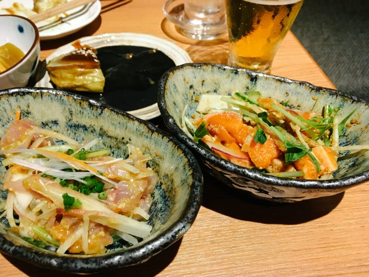 刺身とかお魚の類いは店員さんにオーダーしてから作られて出てくる。なめろうを頼んでみたけれど、お刺身を叩かずに細切りにしてミョウガとかも大きめに入っているのは斬新。そしてすっごい美味しい。
