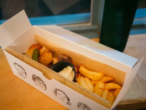 しかし、出てくるフライドポテトは見た目にも珍しいものがあったり、そしてどれも美味しい。単品で頼んだ方がカップに入って盛り付けがかわいいのだが、お得感がありあれこれ頼めるのはボックスセット。AND THE FRIETではおなじみの顔のイラストが描かれた箱はおしゃれで、お土産なんかにいいかもしれない。