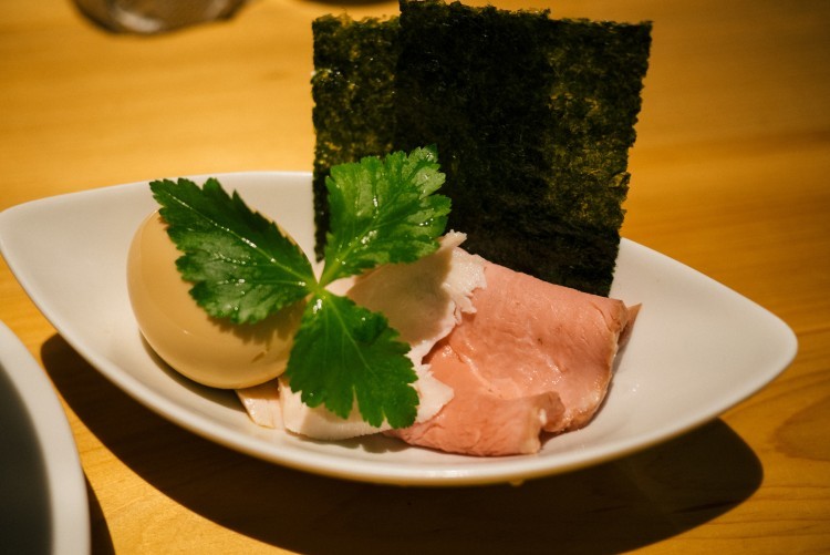 頼んでみたのは「特製蛤SOBA」というもので、通常メニューとの差はチャーシューの量と味玉子、海苔がついてくるという点。大山鶏のチャーシューは少し赤身が残る低温調理されたものは絶品。肉厚で食感が柔らかく、ラーメンのスープに入らず出てくるのは、これ単品でも充分美味しいからじゃないかと思う。