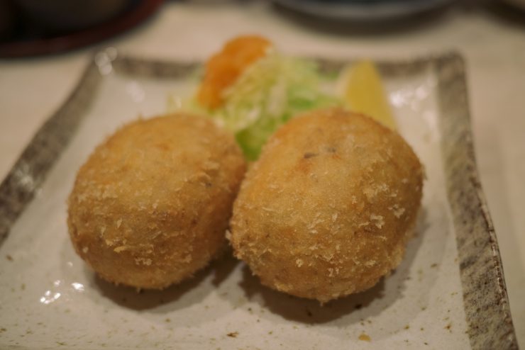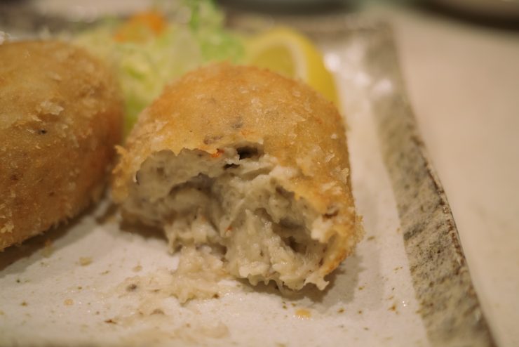 そして、いままで食べてきたコロッケの概念が変わるほどの美味しさだったのは、ズワイガニのクリームコロッケ。クリームのとろみも最高に美味しいし、なによりズワイガニの身が贅沢に入っているのはコロッケとはこんなにすごい食べ物だったっけ、と思うくらいだ。