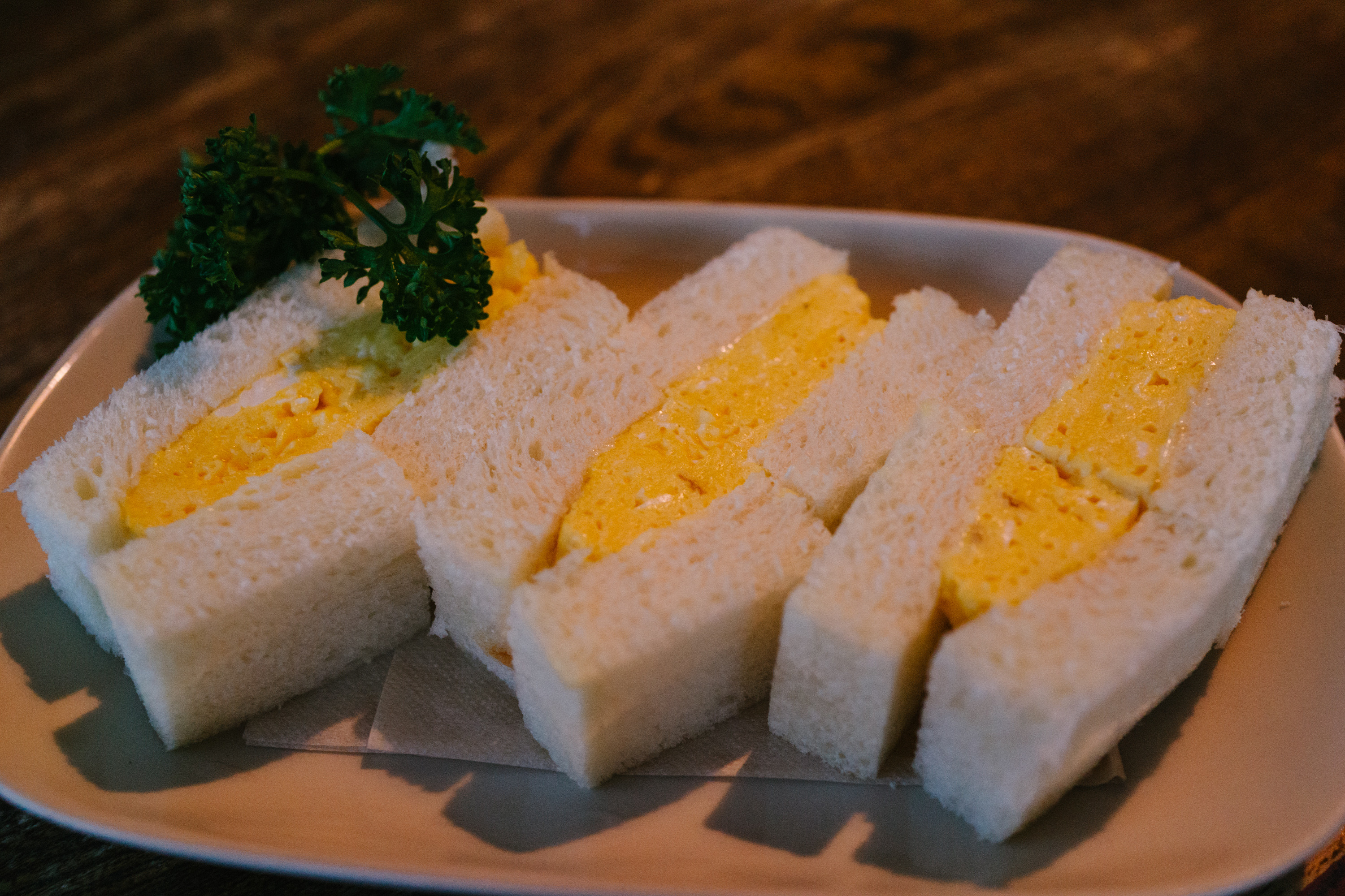 お店の人気メニューは玉子サンドイッチ。厚焼き玉子をパンにはさんだだけのシンプルなサンドイッチなのだが、玉子焼きがちょっと弾力ある固さになっていて、これっていったん成形したあと改めて軽く表面に火を通しているのかなって思う。この食感が絶品で、塩加減が焼いていないふんわりとしたサンドイッチのパンによくあっている。