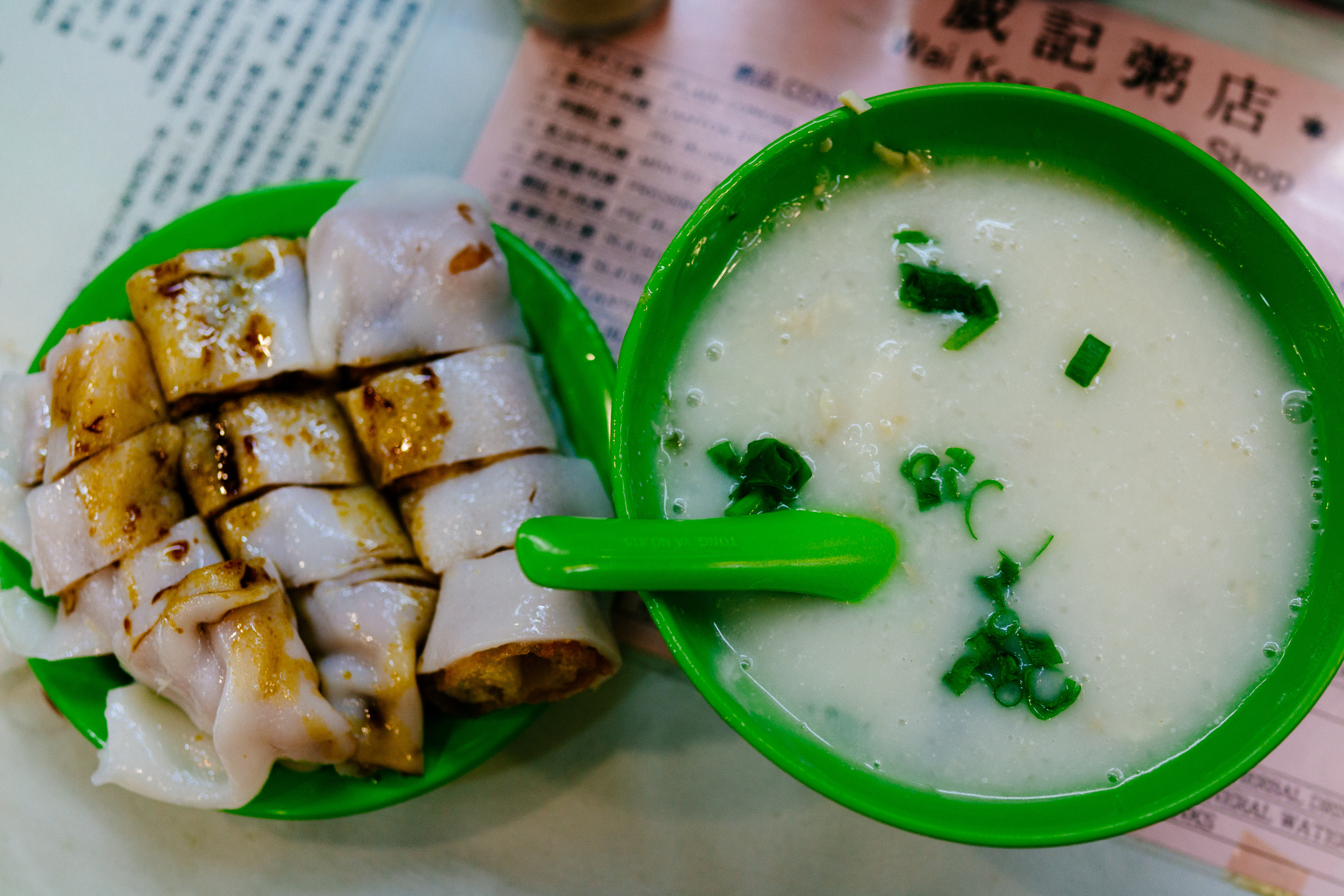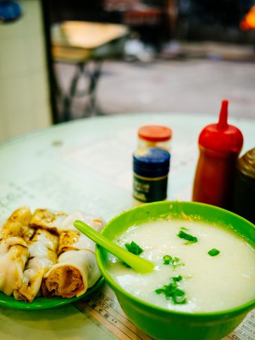 お粥はシンプルな味付けで、ちょっと涼しい香港の朝によくあっている。トロッとしたスープみたいな食感で優しい味がする。