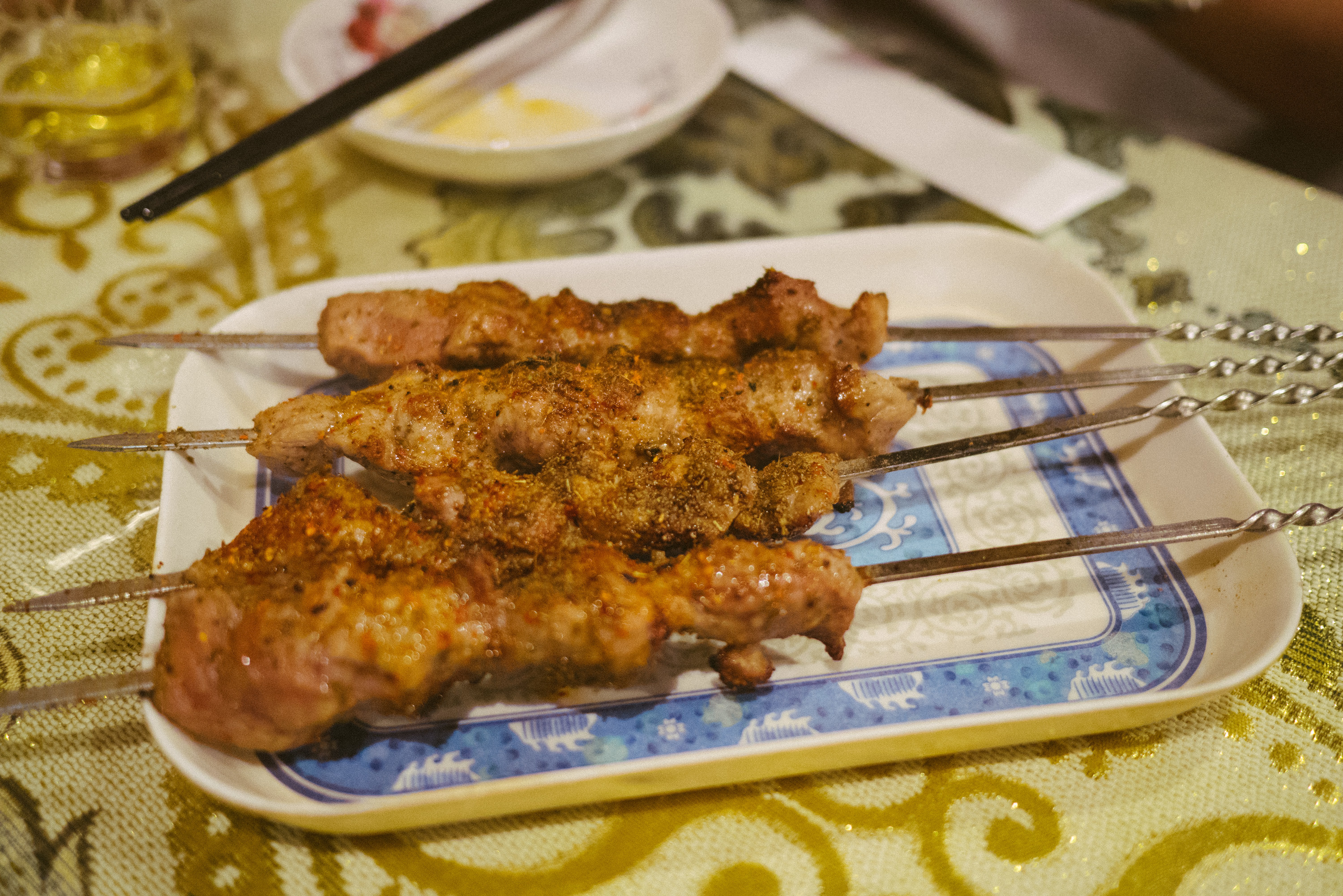 そして、羊肉の串焼きであるシシケバブ(シシ カワプ)もある。これもクミンなどの香辛料がきいていて肉と香辛料の香りが美味しい。店内はウイグルの人たちと思われる方も結構きていて、ローカルのコミュニティみたいになっている。かといって閉鎖的なお店名わけでなく、アットホームな感じ。注文を取りに来る店員さんも気がきいている。