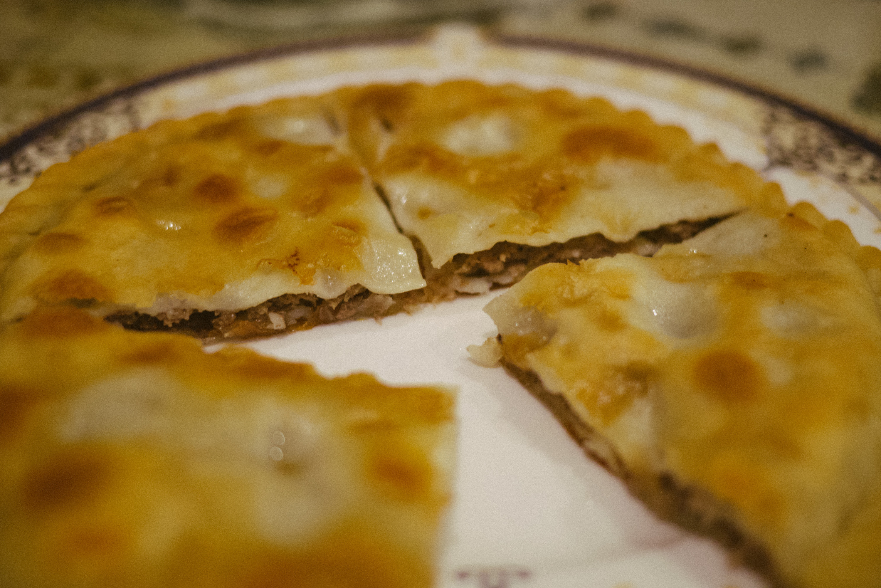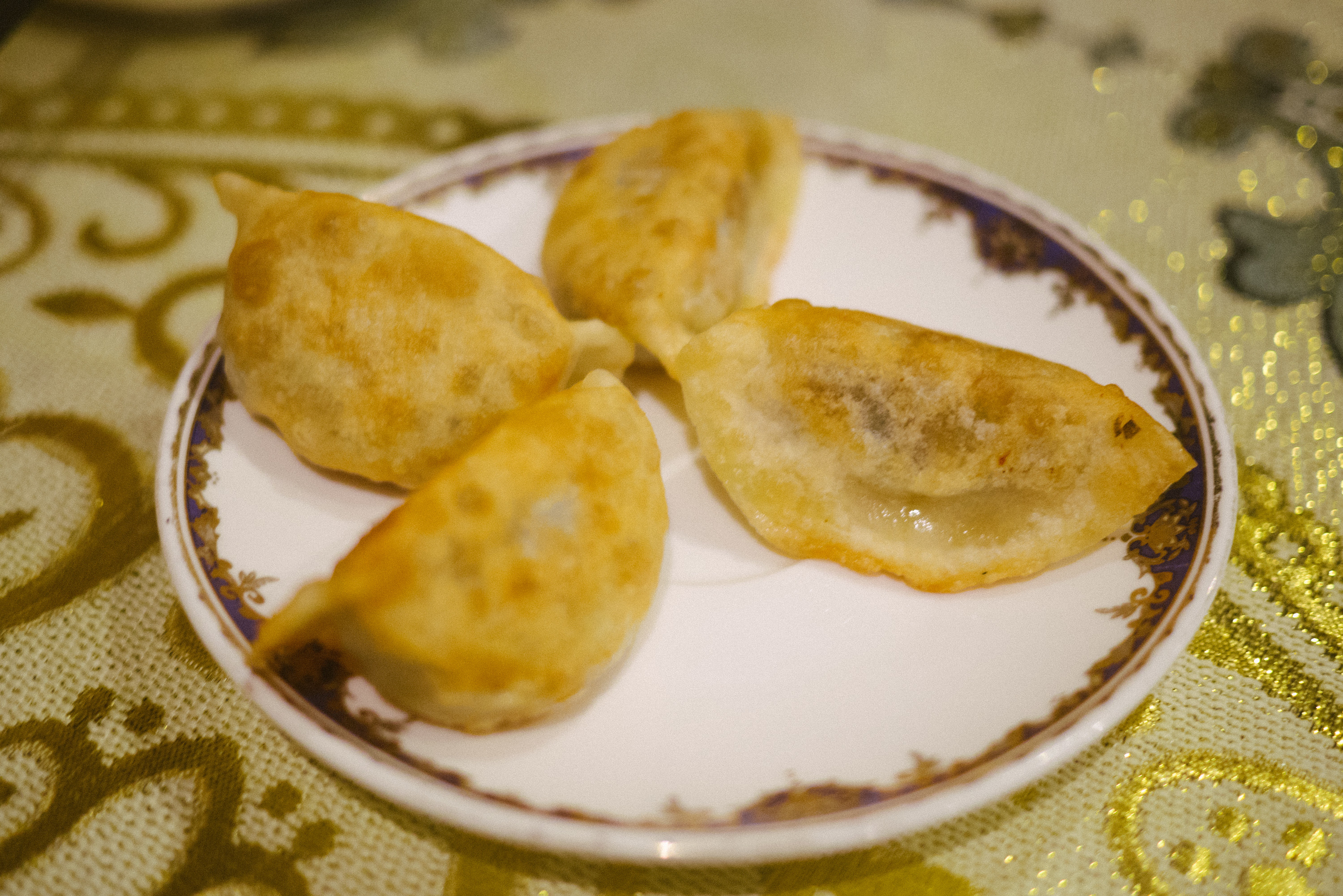 メインに行く前に、「ゴシ ナン」というウイグル風ミートパイを頼んでみることにする。薄焼きのピザみたいな感じのなかに羊肉がつめられていて、たしかにミートパイという表現がしっくりくる料理だ。面白い料理だなあ。そして、どれもが美味しい。