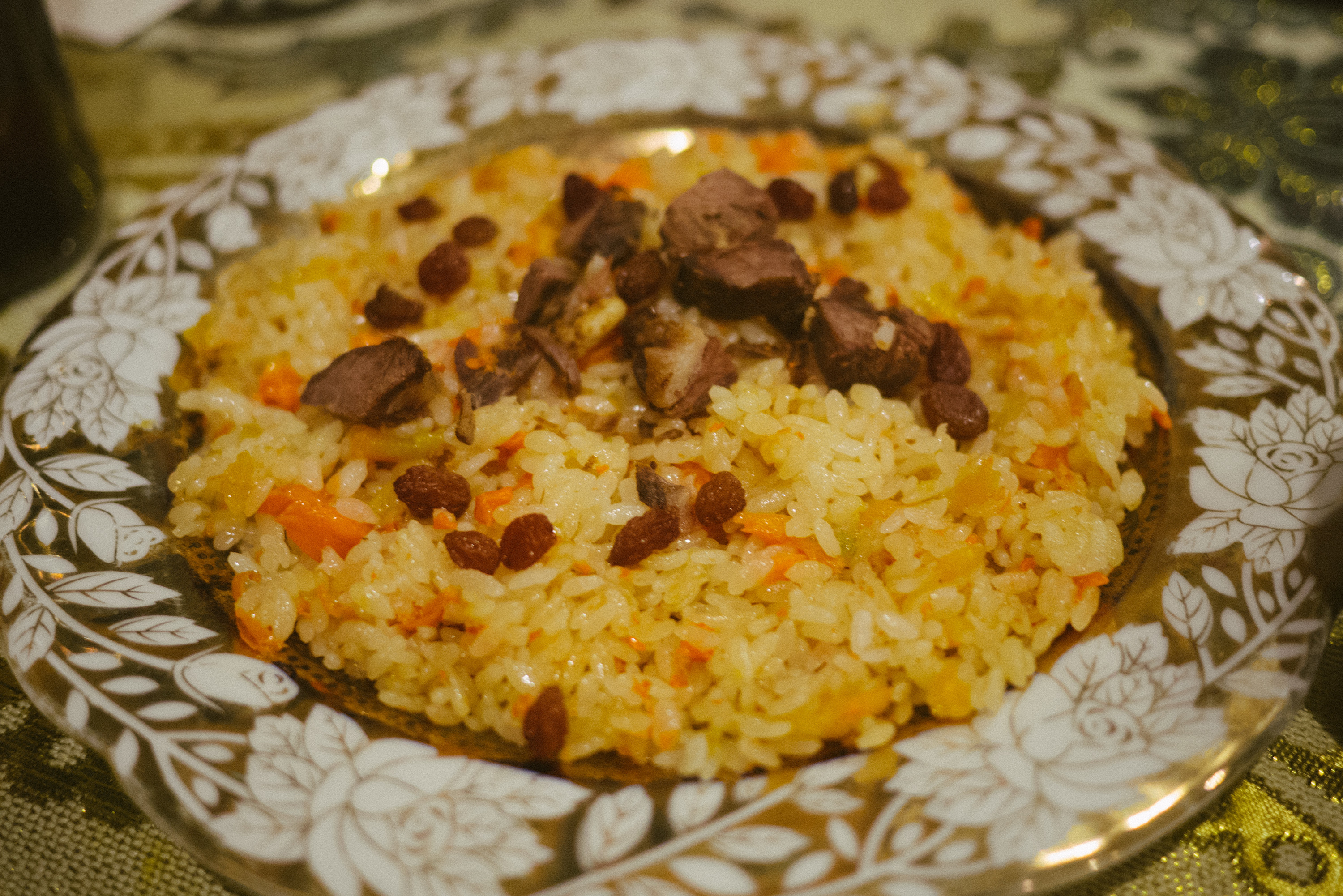 このレストランではラグメンは二種類あるけれど、違いは具材の豪華さだという。どちらを頼んでも充分美味しいと思う。麺の上に野菜などを炒めたものをのせて、それを混ぜ合わせて食べる料理なのだが、麺のコシがあって食感なども歯ごたえ抜群。これは美味い。ラーメンの祖先なのかといわれると、違うものだなって思うけれど、この料理は日本人にもあう優しい料理だと思う。