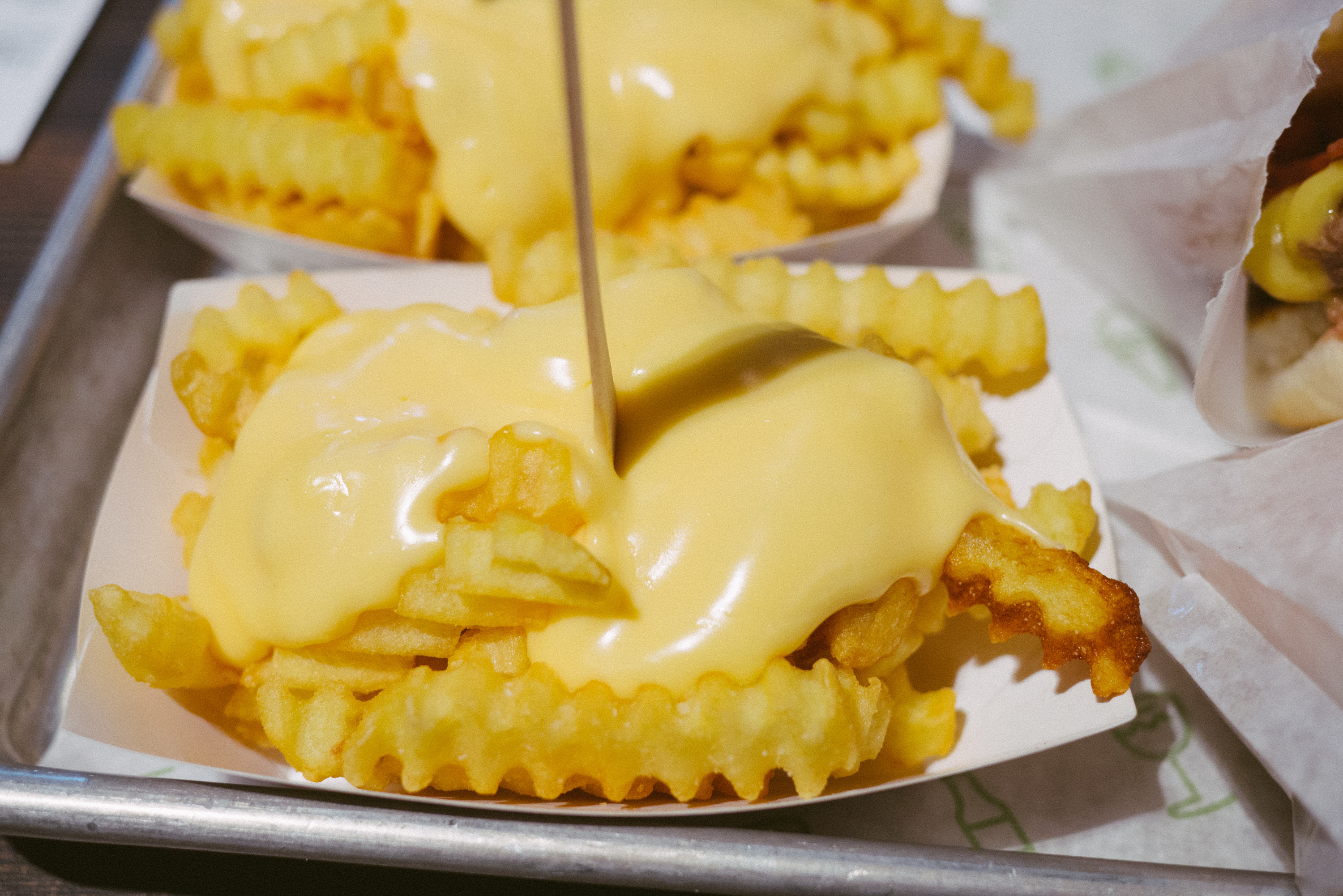 お店はひとりでも入りやすく、カウンターでオーダーして後から取りに行く方式。なにを食べていいのか悩んだのでお店の人のおすすめである、スモークシャック(SmokeShack)と、チーズフライを選ぶことにする。