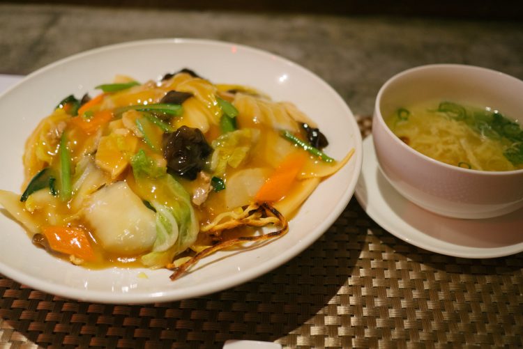 辛いものがあまり得意ではない僕が頼んだのは「あんかけ焼きそば」。テーブルに黒酢があったので、少しかけて食べるとうまさが増すと思う。野菜がたっぷり入っていてヘルシーな料理。昔好きだった、西麻布の「百菜」で食べた焼きそばを思い出すなあ。