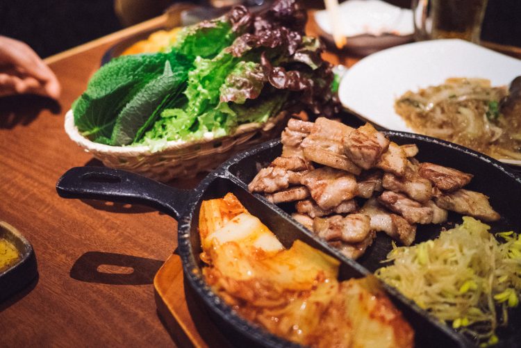 お店の名前になっている「さんぱ」とは「ごはんを包む」という料理の意味があり、野菜の葉でごはんを包む慶州地方の伝統的な料理がもとになっているそうだ。焼肉だけではない韓国料理を楽しむことができる。