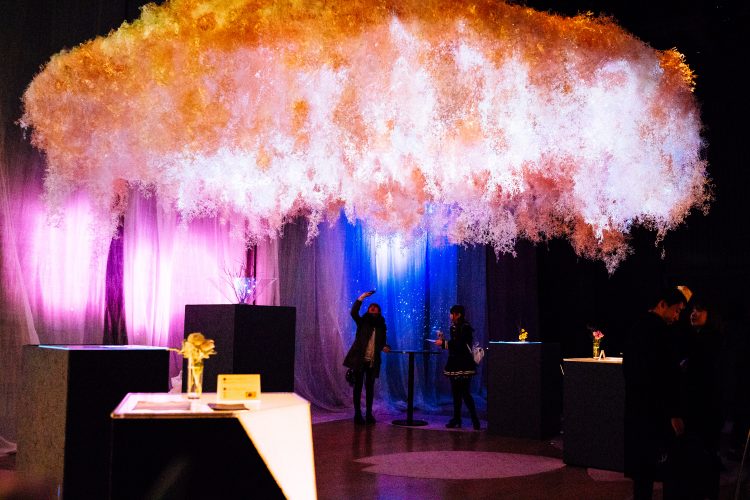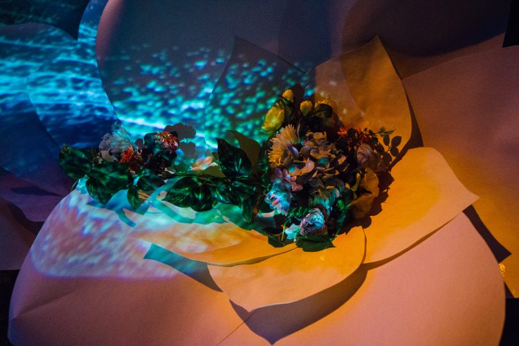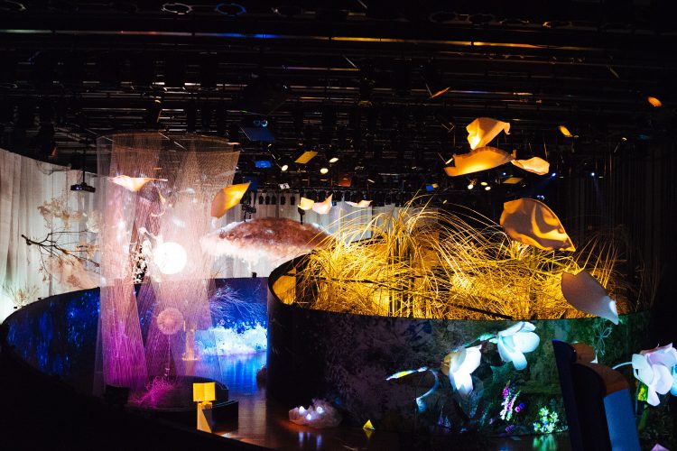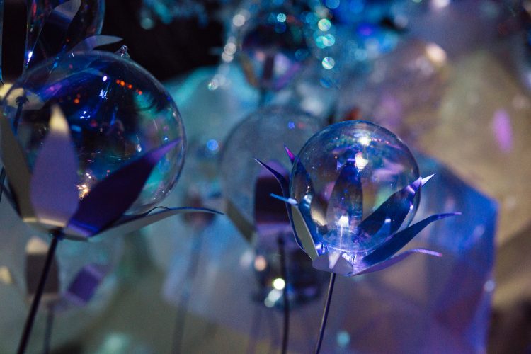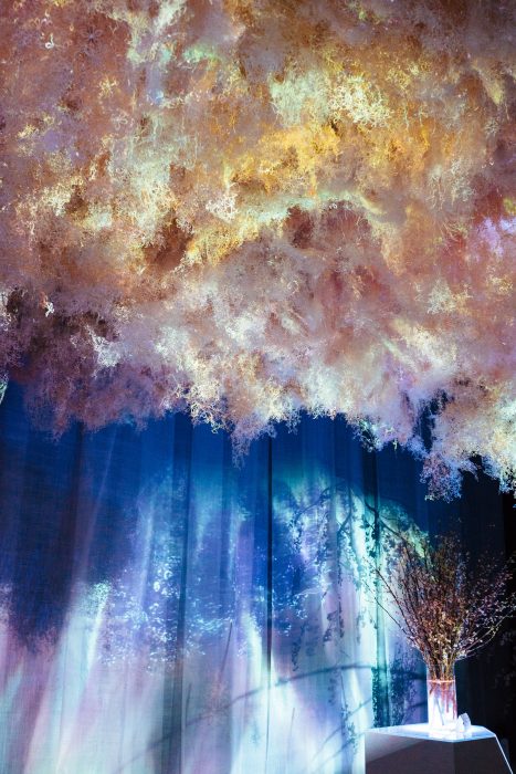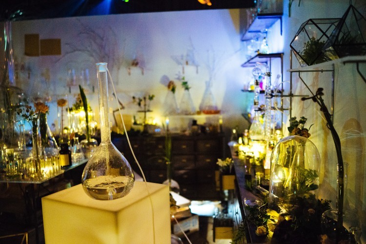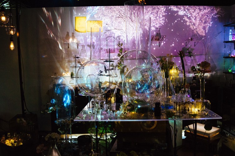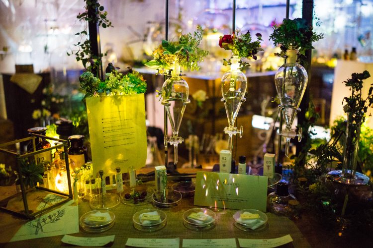 最後には、色鮮やかな試験管やボトルが並ぶ実験室みたいなところが出てくる。このイベントに合わせて開発された花のアロマをそれぞれ楽しむことができる。ハイライトみたいなところ。すぐ後ろ側からは会場を一望できる席へあがる階段もあり、ここでのんびりと余韻にひたるのもまたいい。