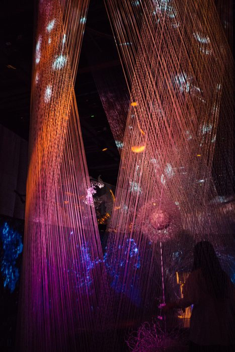 写真映えはあまりしないのだが動画だと楽しいインスタレーション。編み込まれた塔のようなオブジェのなかにあるタンポポの綿毛に息を吹きかけると大きな音とともにデジタルな綿毛が舞い上がっていくのがみえる。これは実際に来てみて体験するのが楽しい。そして、細かいところにも仕掛けがあったりするので見逃さないようにしたい。