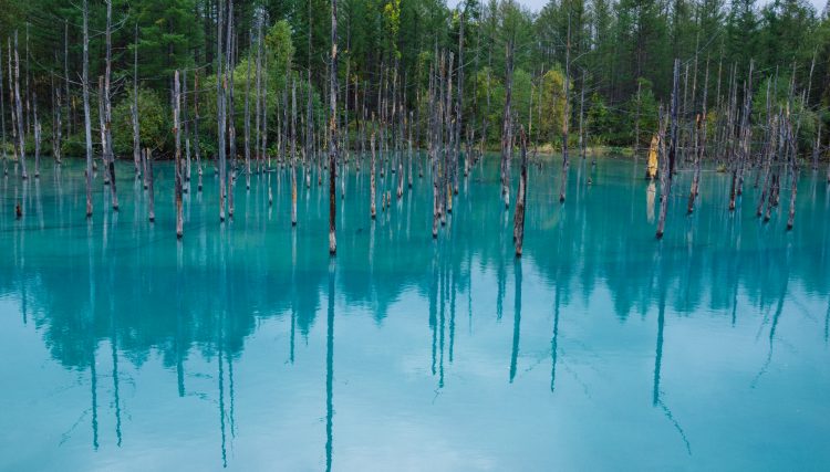 美瑛にある奇跡のように美しい「青い池」。前にいったときには全然人がいなくて、こんな狭いところ入っていくのかよと思ったのだが、いまではカーナビに場所が示されているし、観光バスが止まれるような駐車場まで整備されている。すっかり美瑛の観光地として定着している。