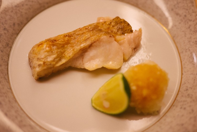 一品料理のシメはのどぐろの焼き魚。少し小さめの切り身のようにして出てきたけれど、少しずつあれこれ食べられるのは楽しい。のどぐろは焼き魚がいいよなあ。