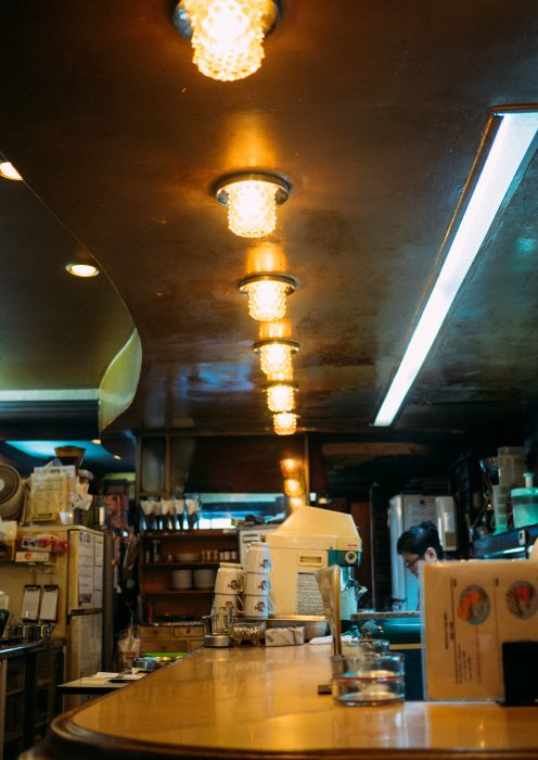人気があるのは商店街を見下ろす窓際の席なのだが、味わいあるカウンター席なんていうのも気になる。昔の写真でみかける喫茶展の風景がそのまま残っている感じがして、お店のおばちゃんもその時代からそこにいるんじゃないかというくらい魅力的な存在感がある。