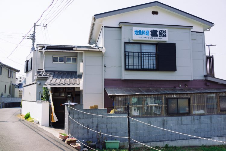 冨鮨はそのなかで高台にある一軒家のお店で、駐車場や店内からは港を一望できるロケーションにある。ここから見える風景が気持ちいい。冨鮨ではこの立地のとおり、布良の港や近隣の港に揚がる地魚を使った鮨が美味しくて有名なお店だ。