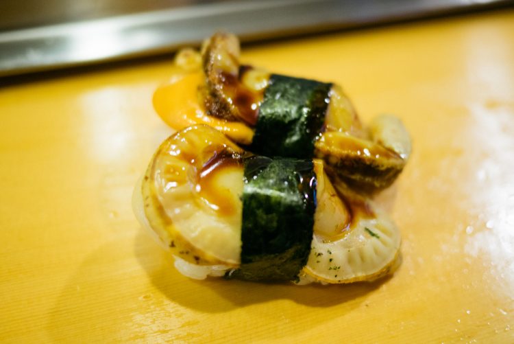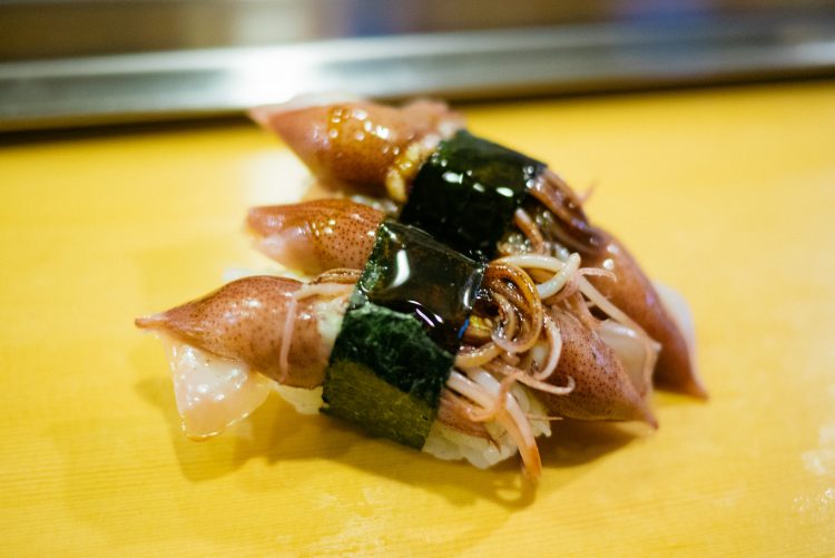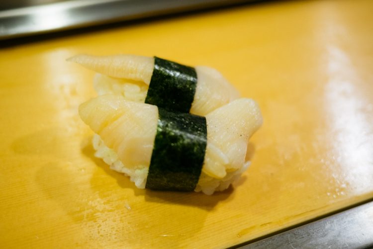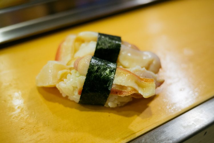 店内は混雑時には写真撮影が禁止となるので、週末などはここで鮨の写真を撮ることは不可能。平日のそれほど混んでいないときには鮨の写真を撮ってもOKというゆるいルールがある。お店の人に一声かけて確認しておくのが安全だ。