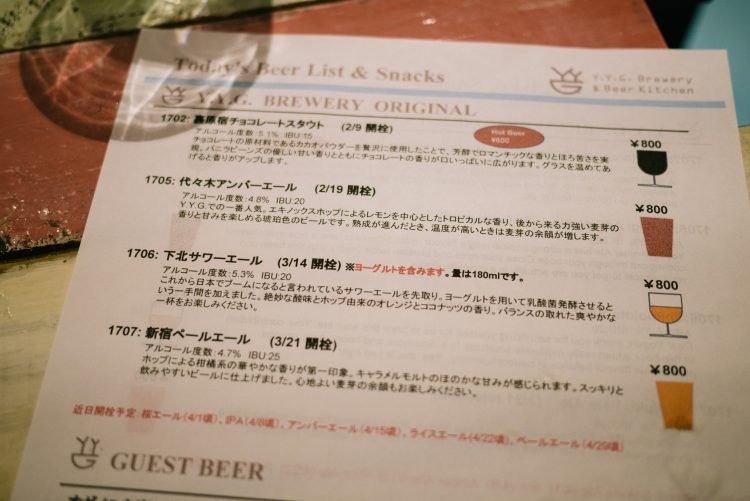 東京らしい洗練された名前のビールが飲める「YYGブルワリー」のクラフトビール