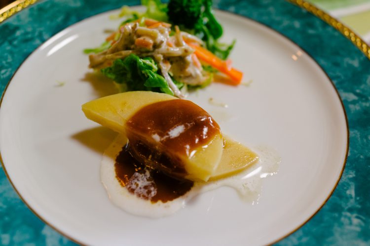 たけのこのステーキ。湯通ししたたけのこにデミグラスソースがけだよね・・。