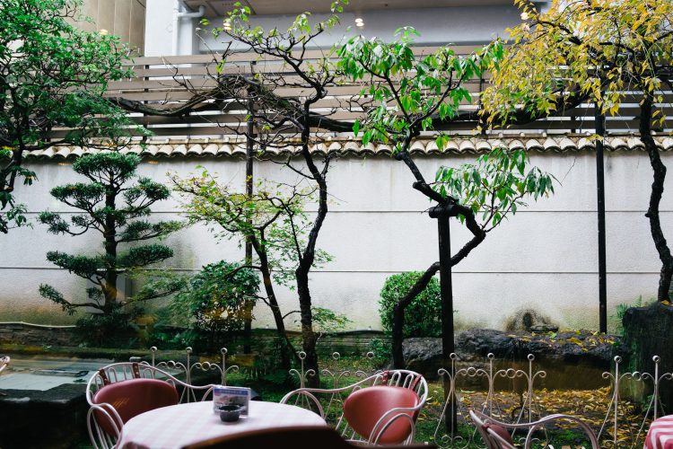イノダコーヒ本店。庭を眺めながらの朝食は優雅