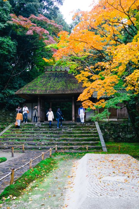 そして哲学の道を歩いて法然院へ。展示会をしていない法然院はせまい境内を見てまわるだけだが、ほかの喧噪をよそに落ち着いた雰囲気のなかで紅葉を楽しむことができる。今回の旅でもっとも印象に残る紅葉だったと思う。